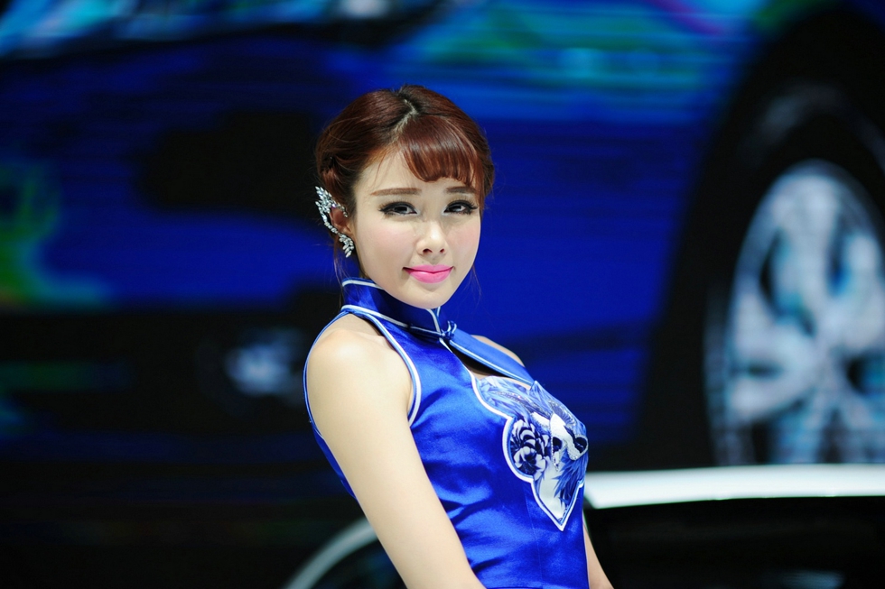 清纯性感韩国超美车模卖萌蓝色制服娇媚妖娆靓丽写真