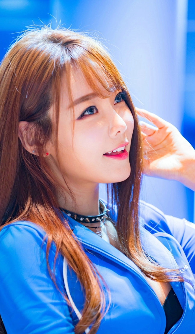 清纯性感韩国超美车模卖萌蓝色制服娇媚妖娆靓丽写真