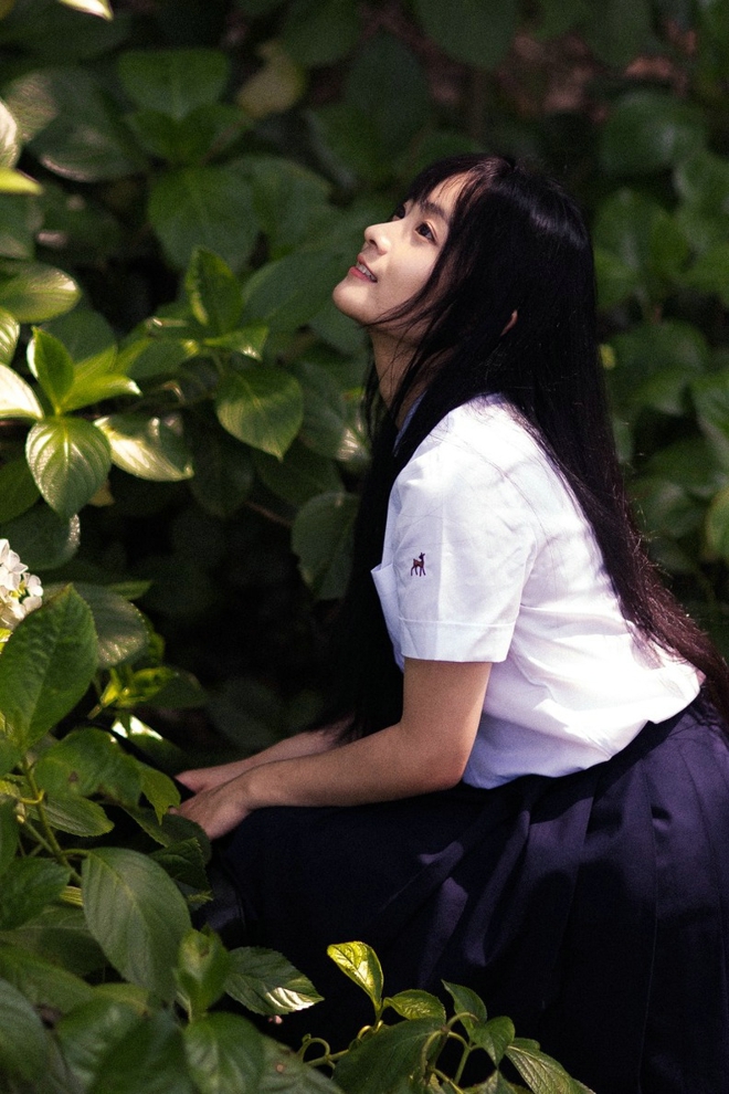 清纯阳光靓丽直发美女学生装短裙清新户外娇巧甜美阳光唯美写真