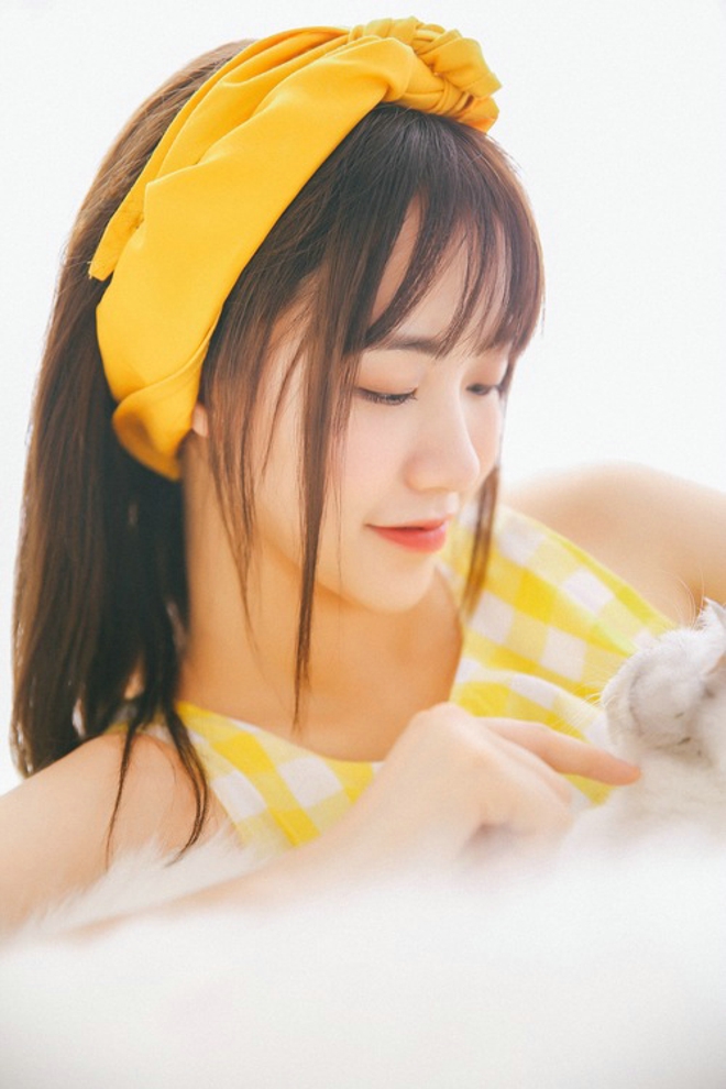 黄色格子裙漂亮美眉居家甜美私房娇巧可爱靓丽唯美写真