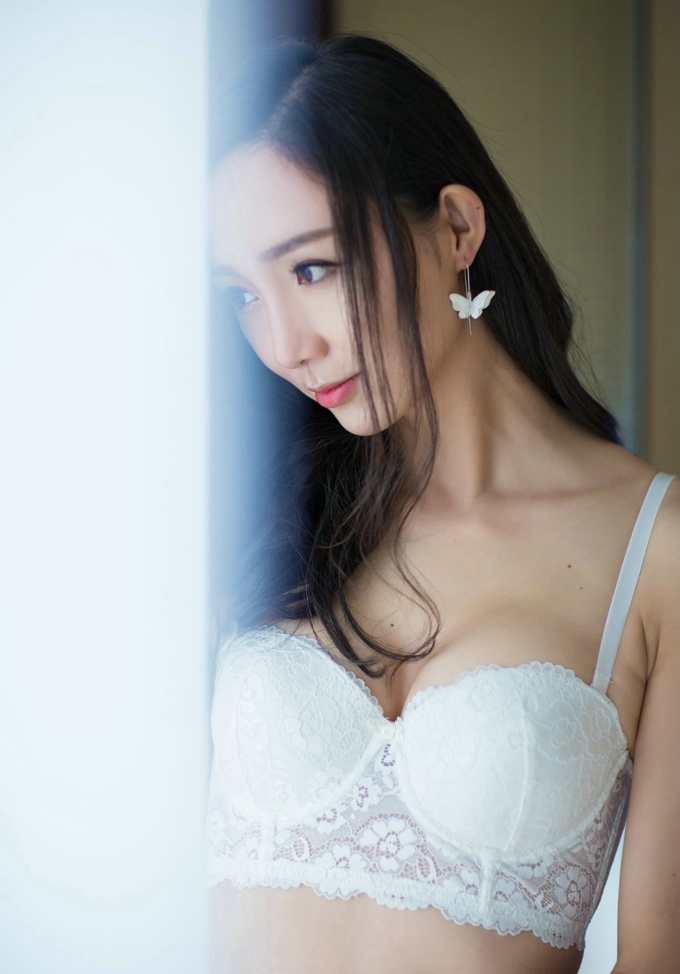 白色蕾丝内衣性感美乳诱惑女神蓓蓓maggie居家私房丰润翘臀写真